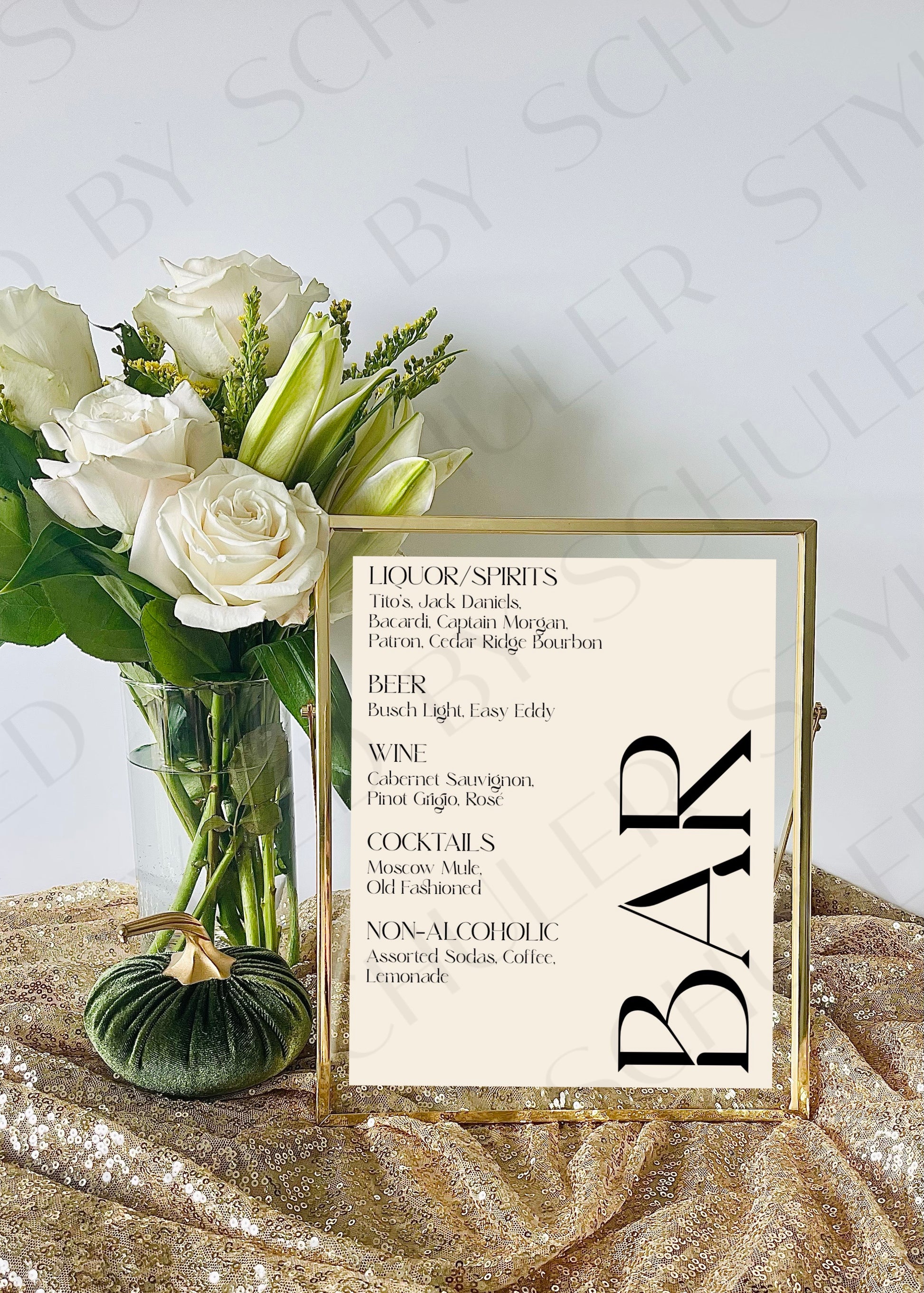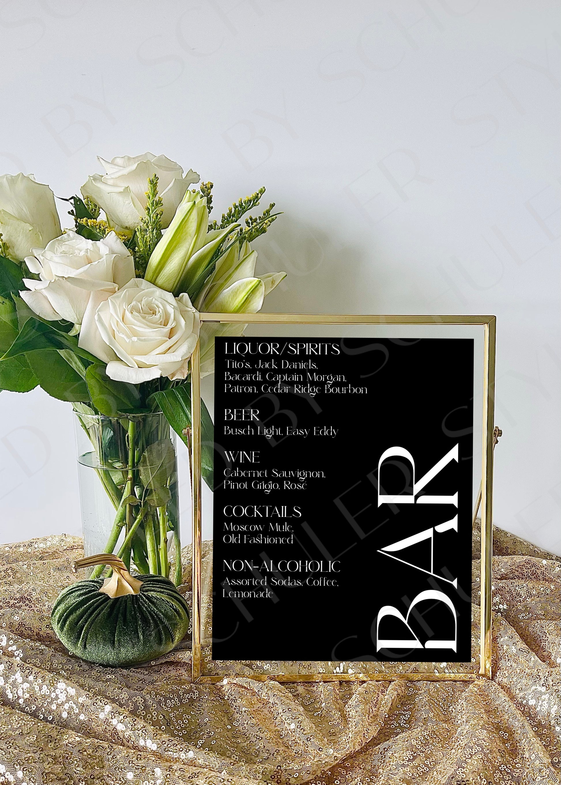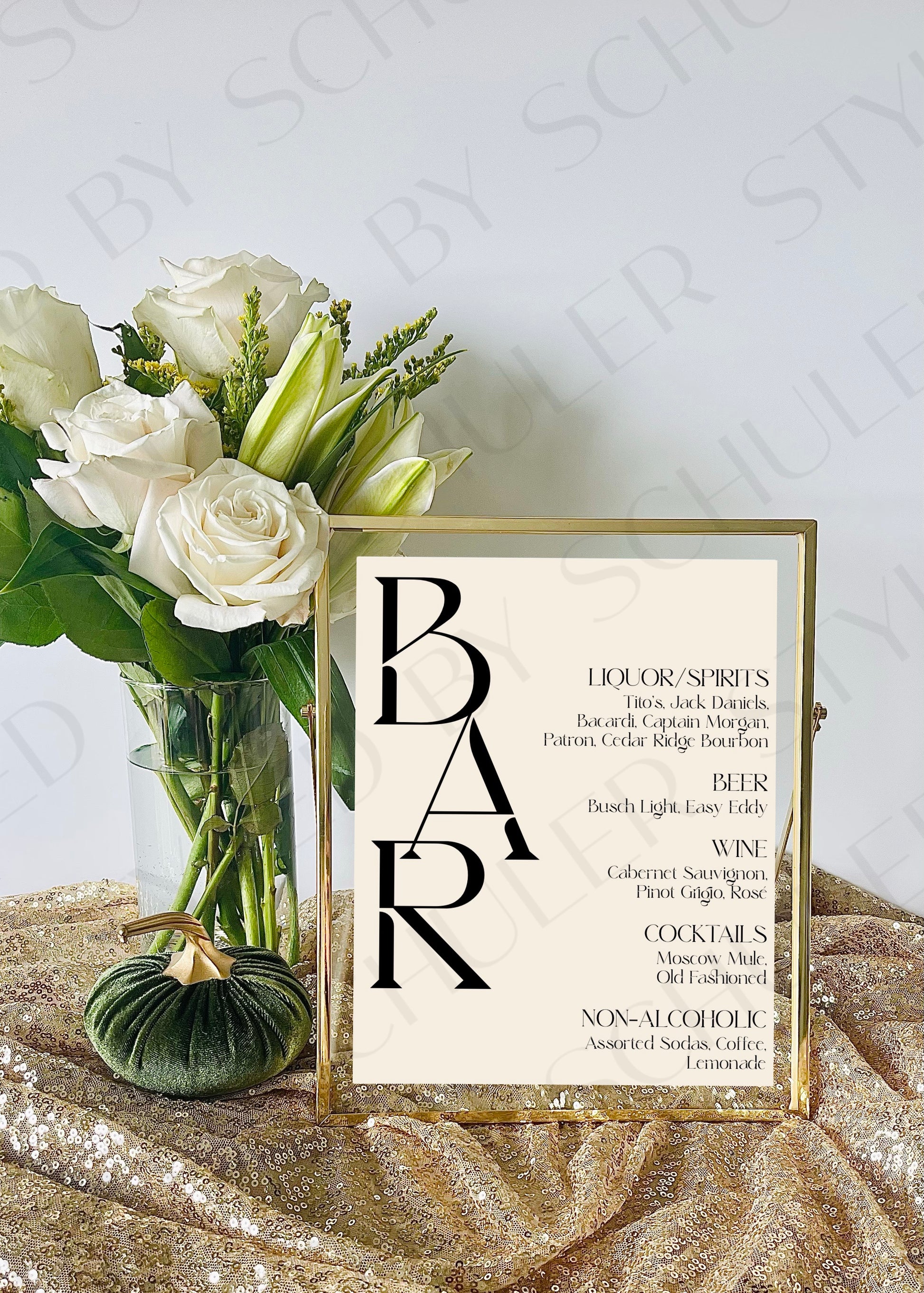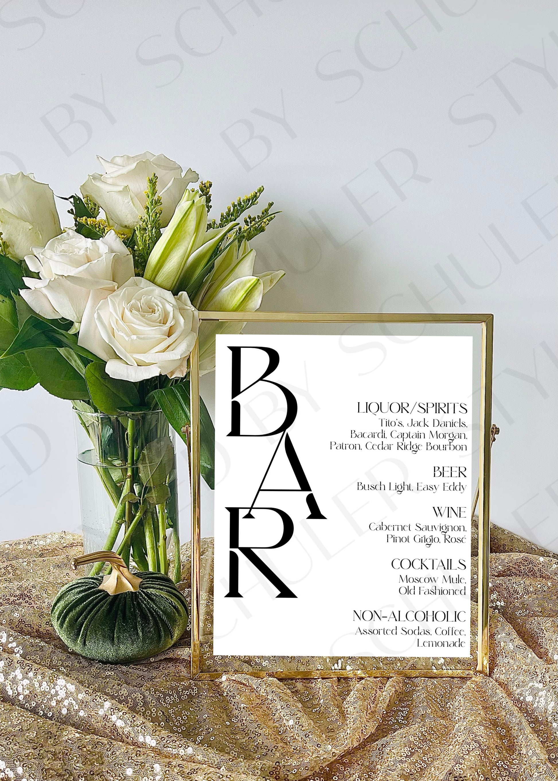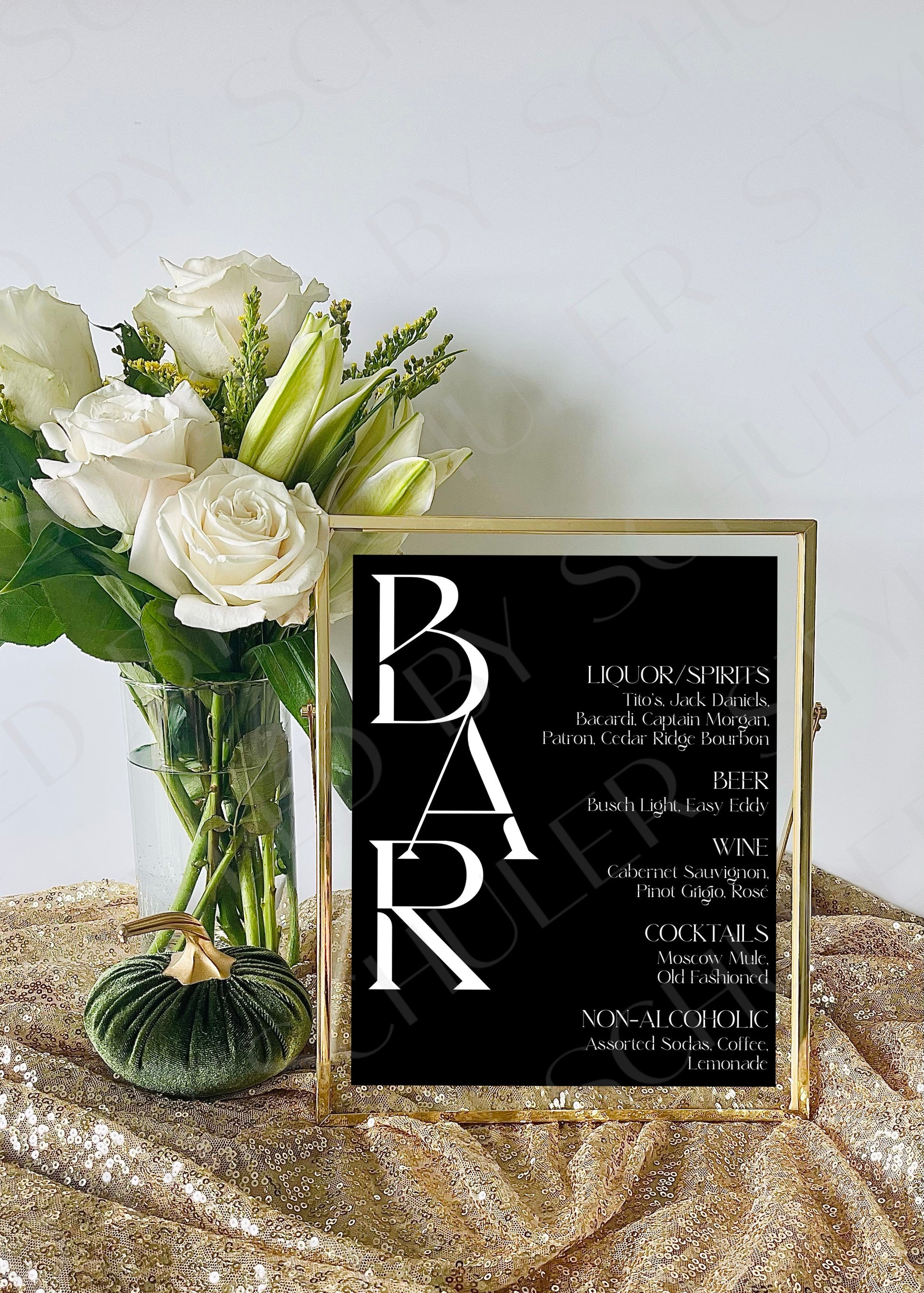 This modern Bar Sign is perfect for any venue for a variety of special occasions. This is a 8”x10” print professionally printed for the highest quality. It features a chic design and elegant script font and is sure to deliver an inviting atmosphere for guests. Perfect for adding a touch of elegance to your event.