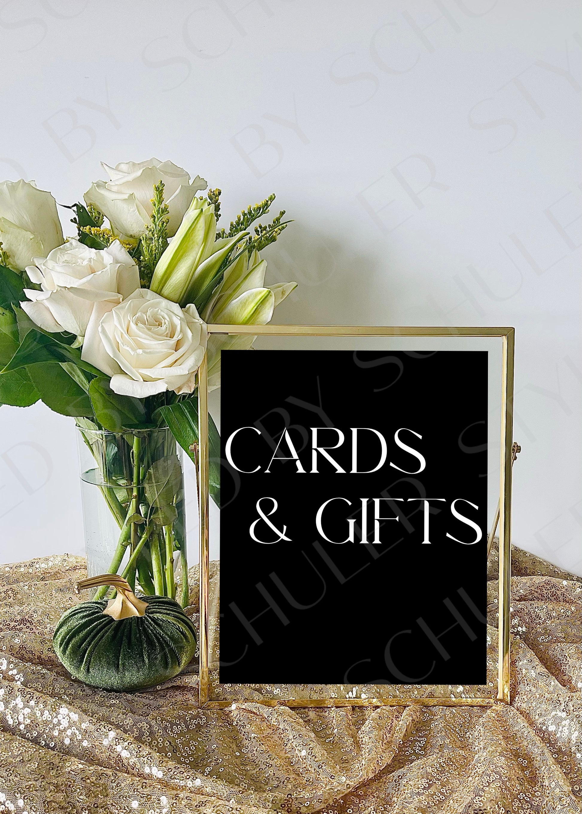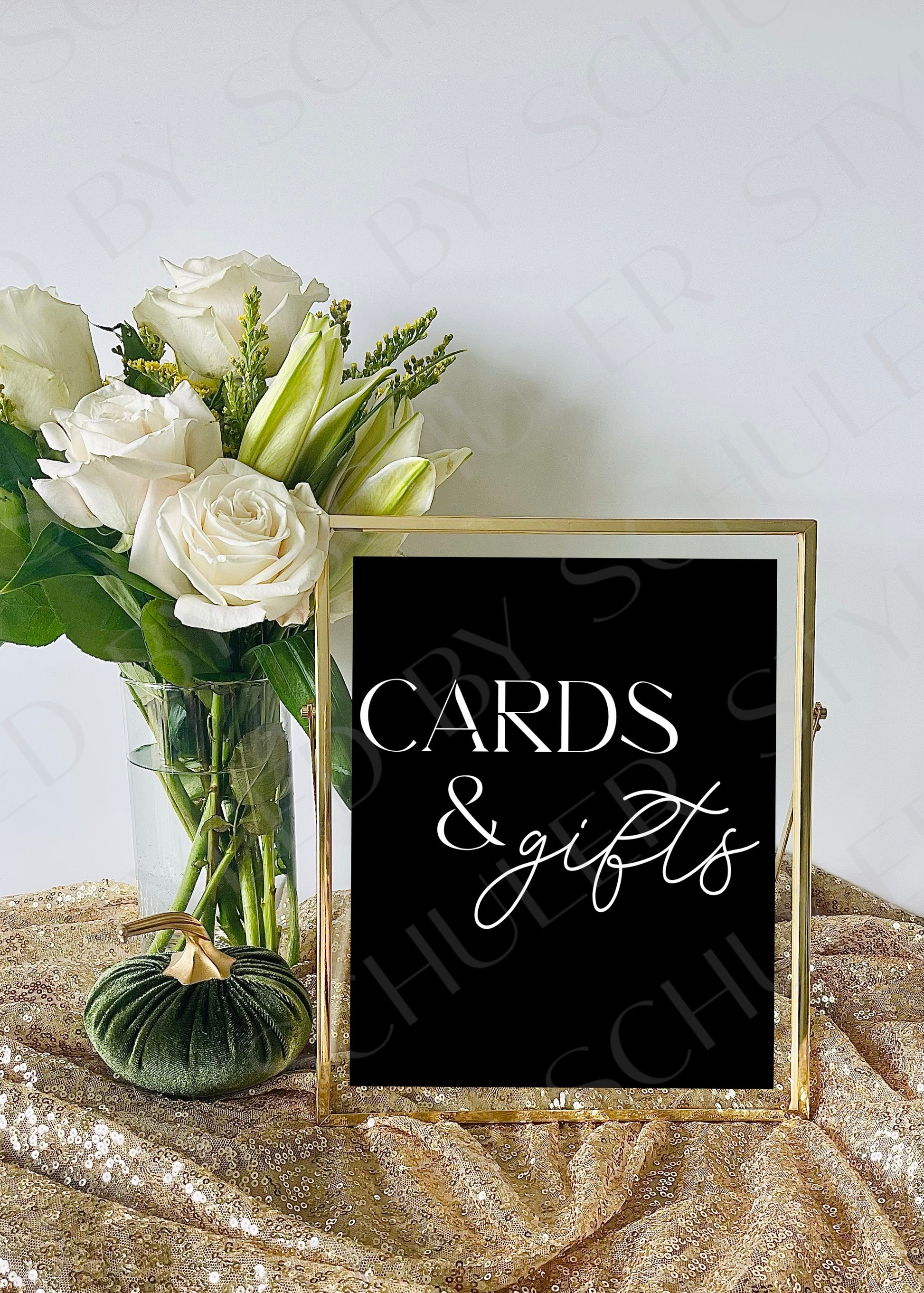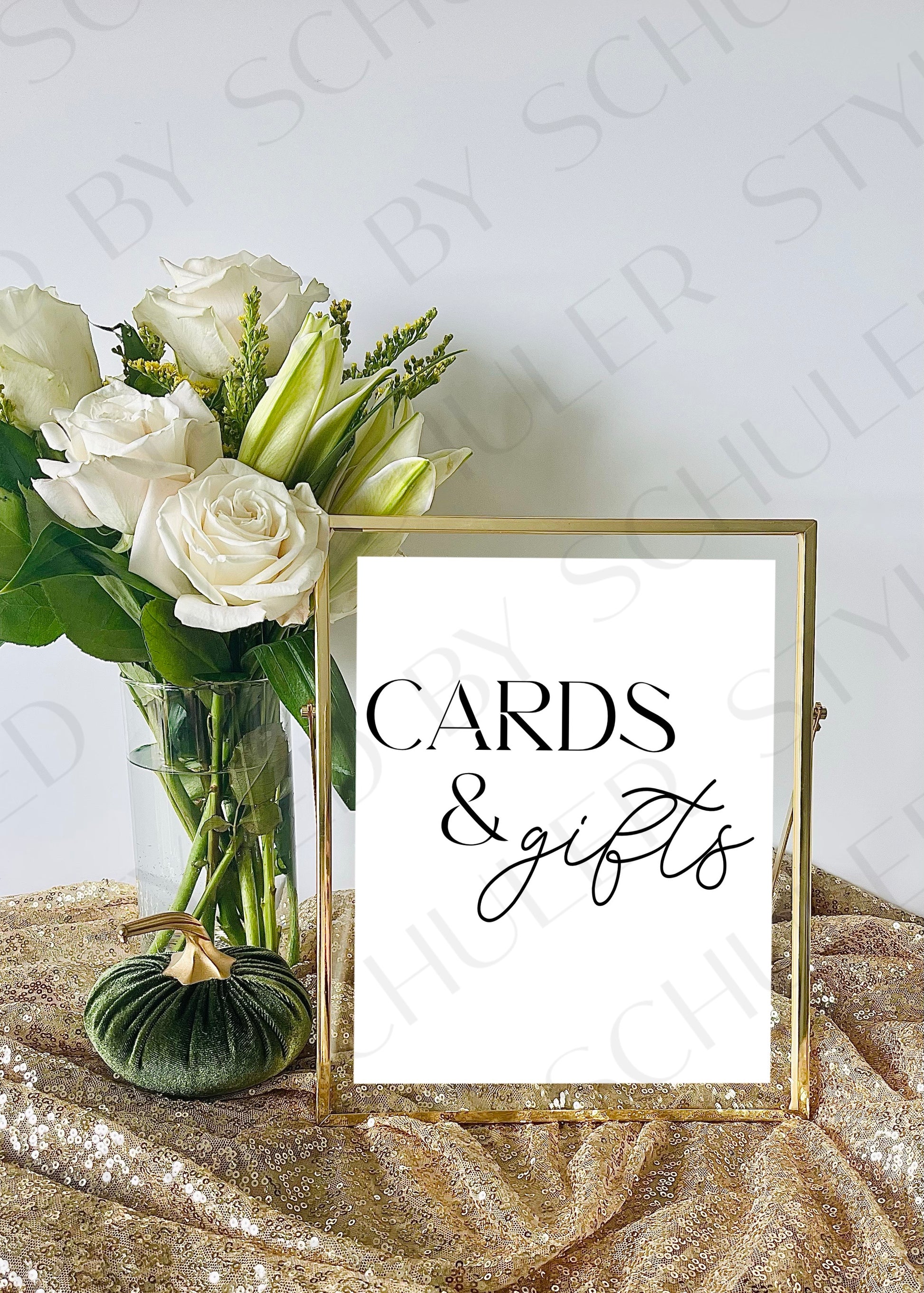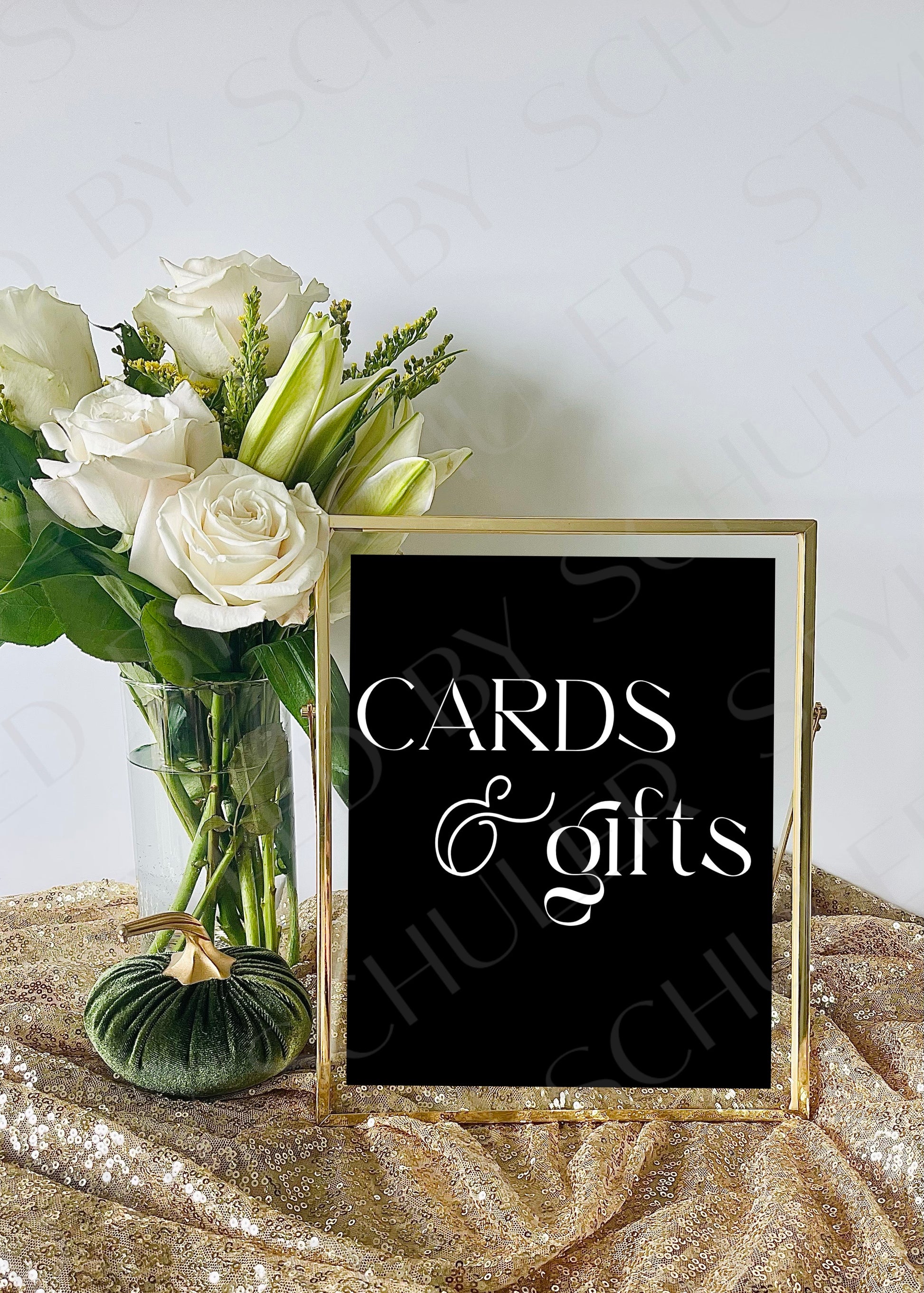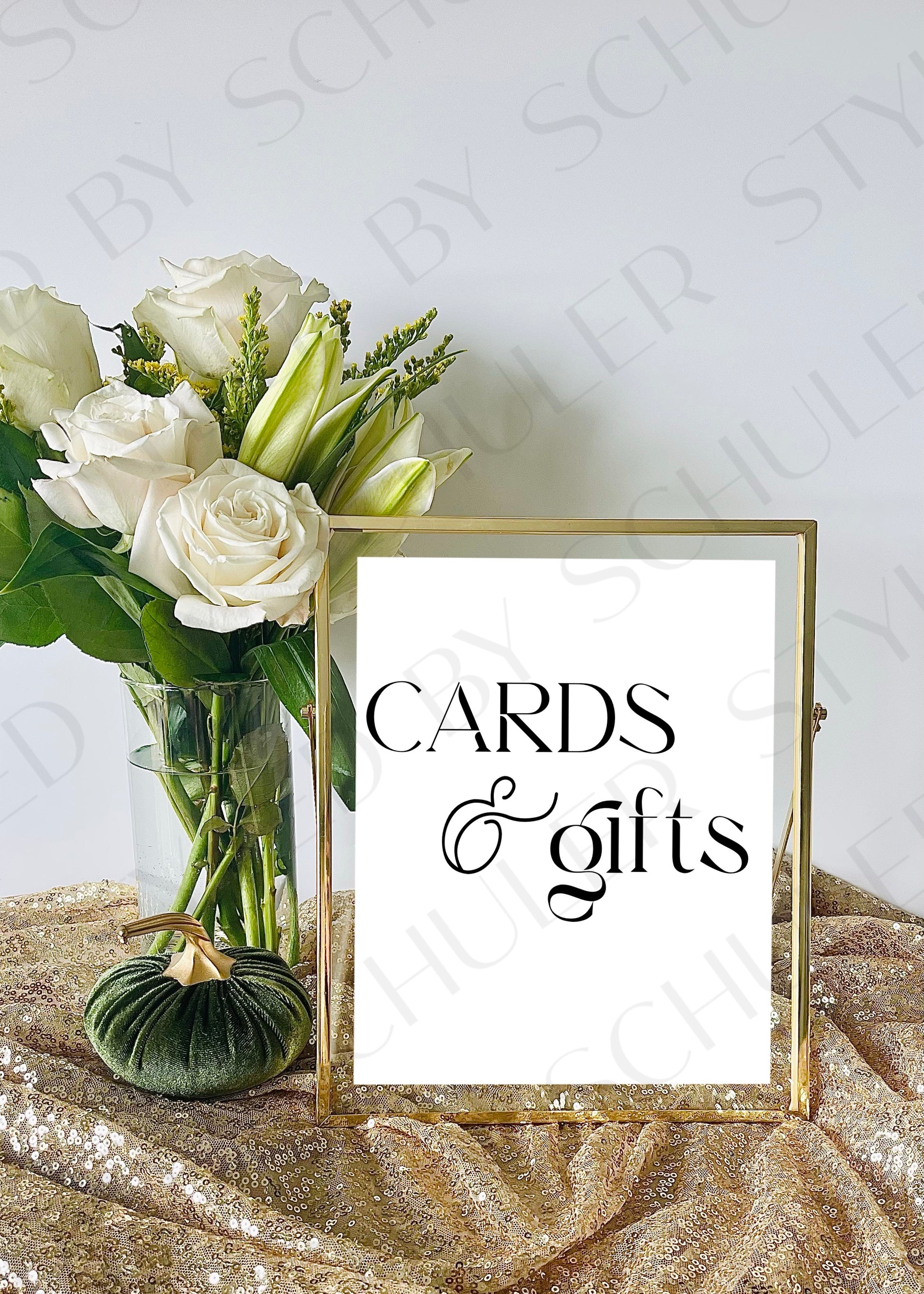 This classic Cards & Gifts sign will be the perfect addition to any bridal shower, wedding, or other special occasion. This is a 8”x10” print professionally printed for the highest quality. It features a chic design and elegant script font and is sure to deliver an inviting atmosphere for guests. Perfect for adding a touch of sophistication to any event.