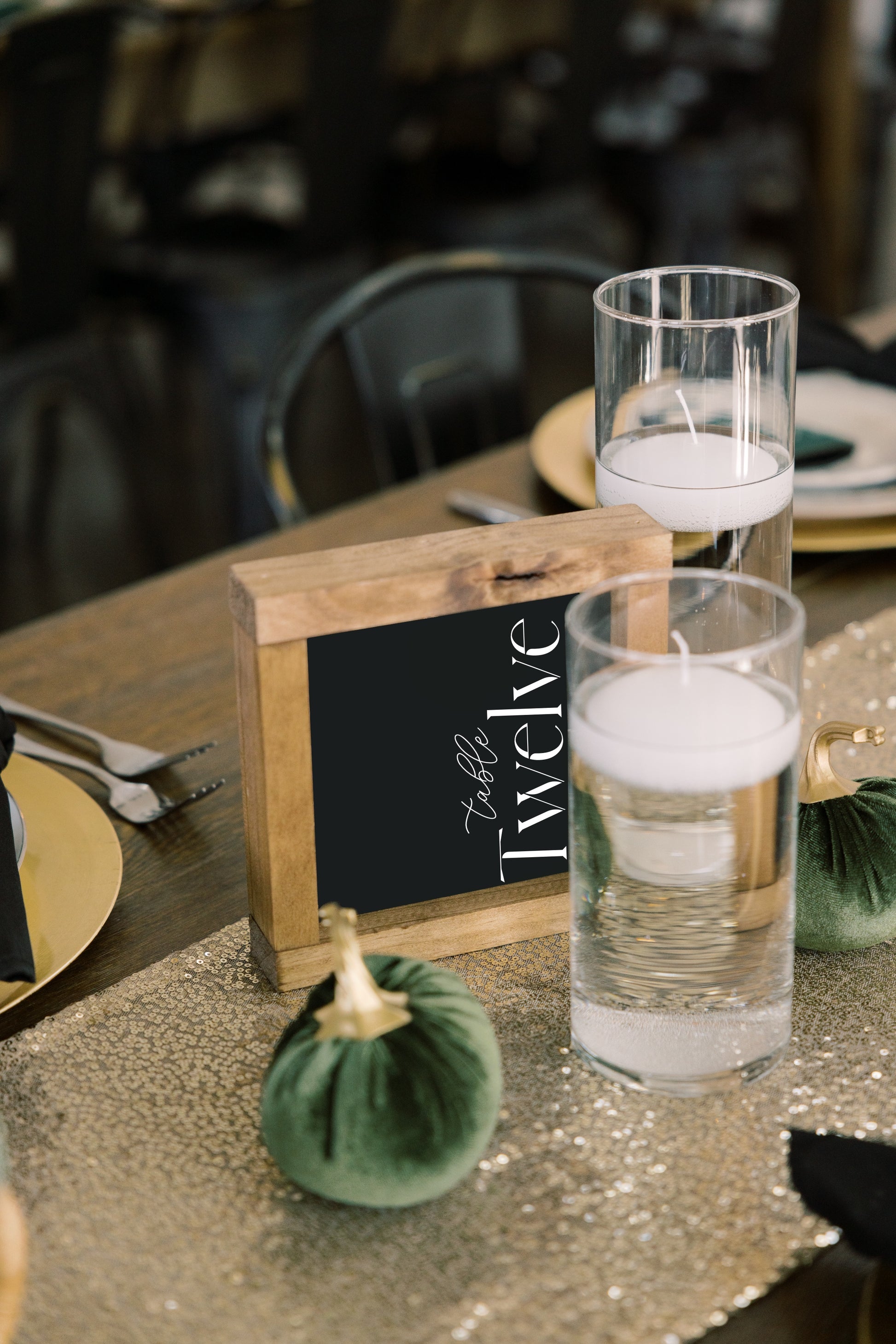 These sturdy framed wood table numbers stand on their own and are a perfect way to mesh rustic with elegance. They match the Modern Collection with its stylish typography and customizable color choices.